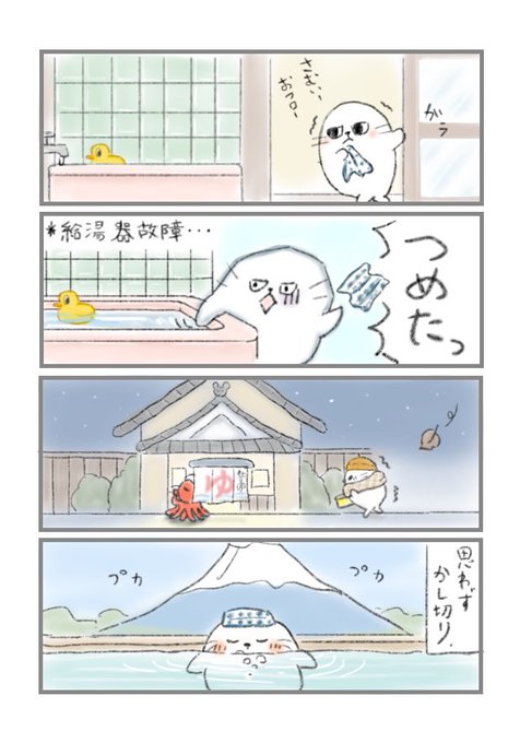 冬至に温まるやさぐれアザラシ🦭♨️ #イラスト #4コマ漫画 #illustration #絵描きさんと繋がりたい #漫画が読めるハッシュタグ #manga #イラスト好きな人とつながりたい #絵柄が好みって人にフォローされたい #日常漫画 久しぶりの更新になってしまいました🙏