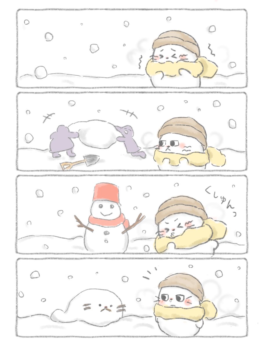ある寒い日のやさぐれアザラシ🦭❄️ #イラスト #4コマ漫画 #illustration #絵描きさんと繋がりたい #漫画が読めるハッシュタグ #manga #絵柄が好みっていう人にフォローされたい