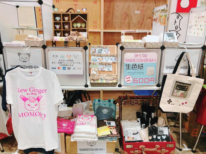 10 22 (#デザフェス スタートッ!】 E-119でお待ちしています🎊うーんゴチャつき感😂笑 じっくりお持ち帰りやさいぬたちを🐶ご覧になってくださいませ! #やさいぬ #やさいぬファクトリー 19/05/18 11:22