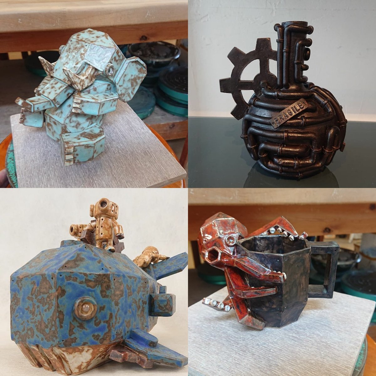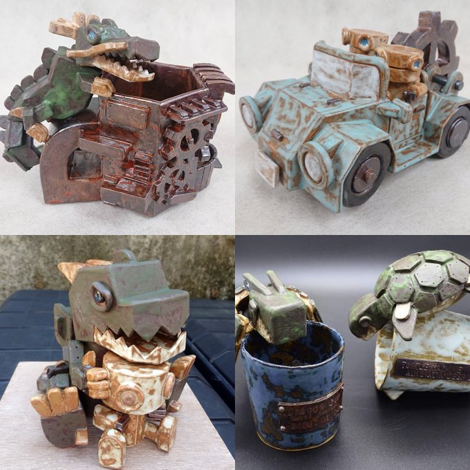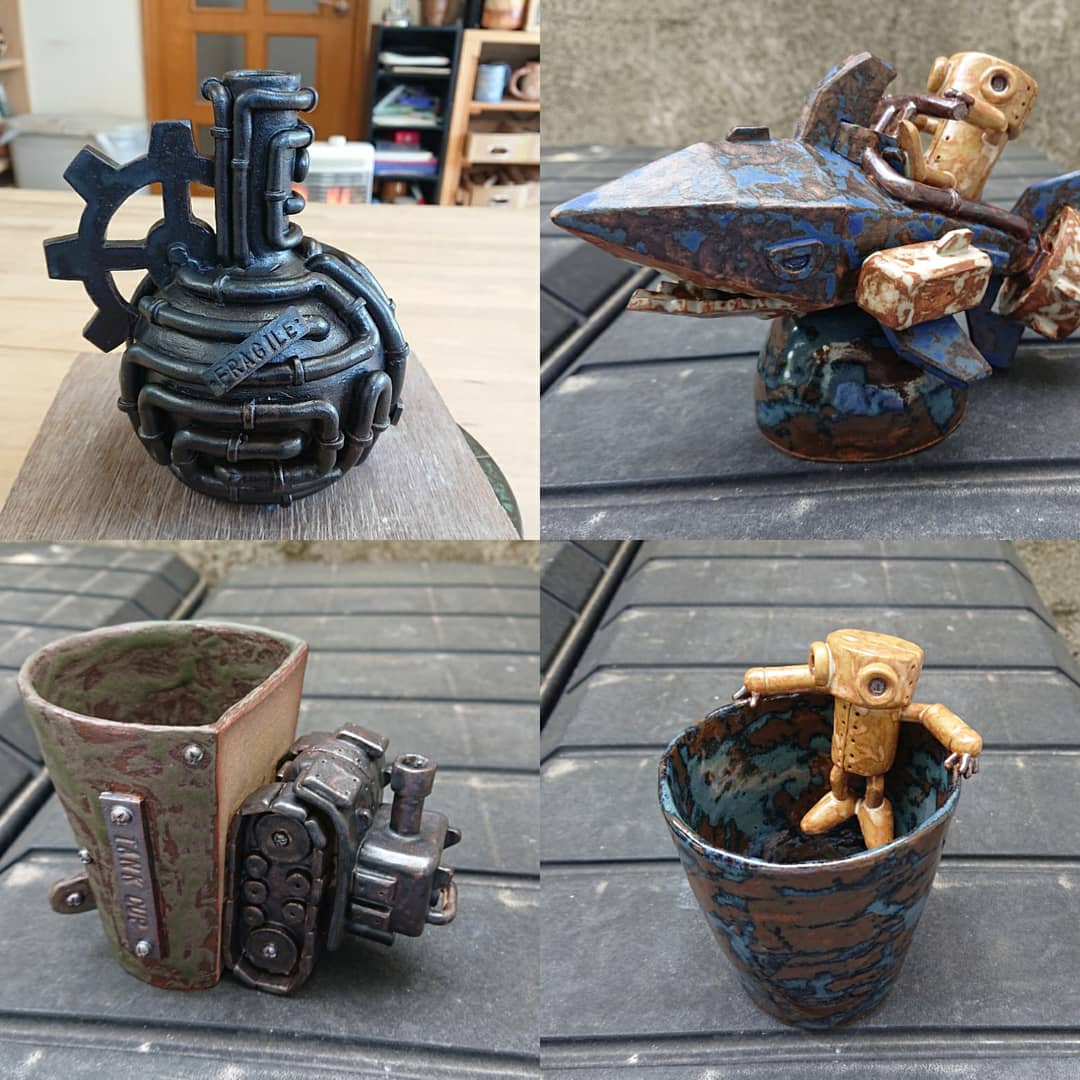 メカやロボットをモチーフにした陶芸作品を作っています✨ 今年は東日本各地で出展できそうなので、お近くの方はぜひ見に来てください♪ #いいねで気になった人フォローする #初夏の創作クラスタフォロー祭り #いいねかRTで気になった人フォローする #芸術の輪 #芸術同盟 #ツイッターで楽しむ展覧会