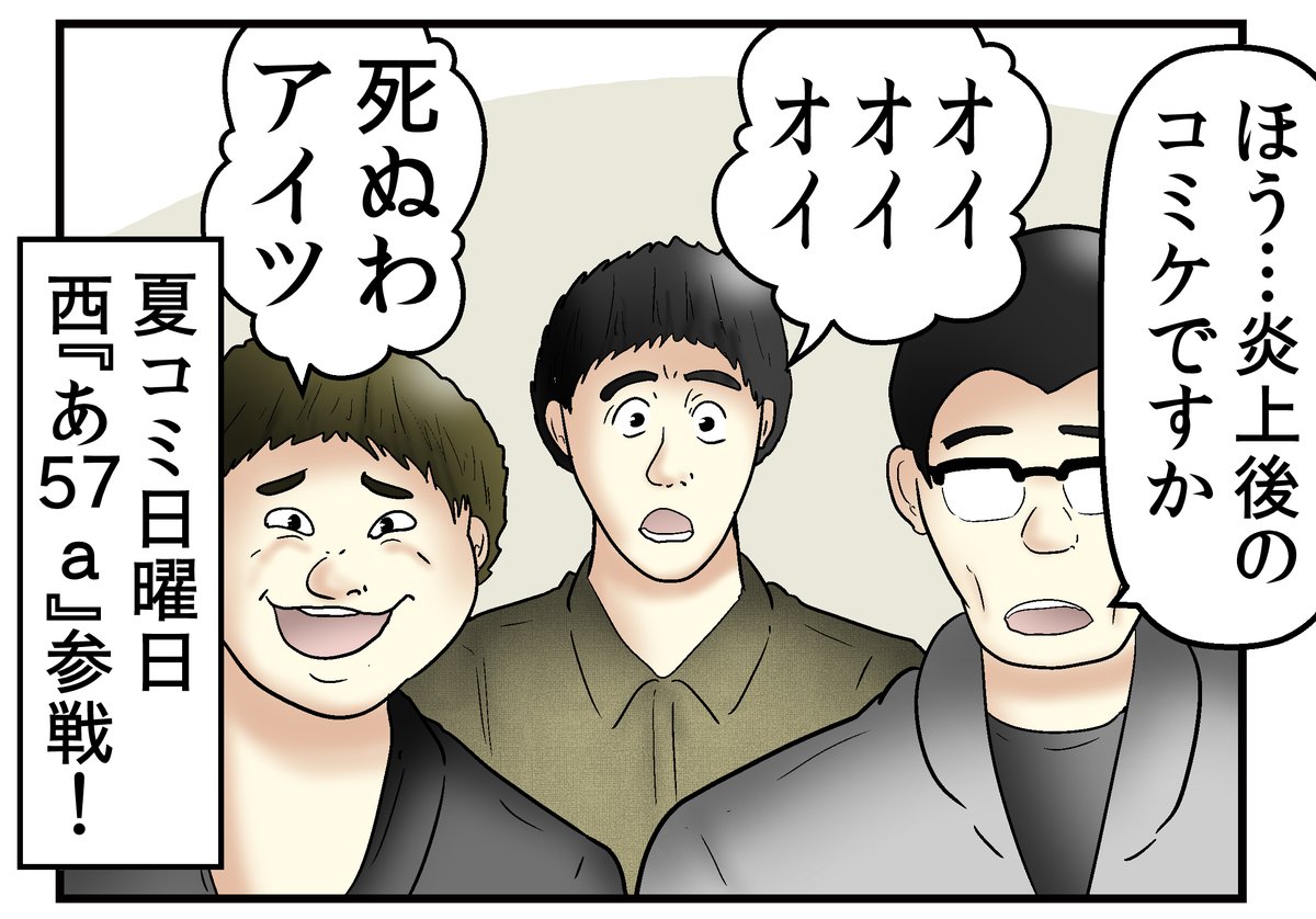 【コミケいます!!!!!!!!】 夏コミは2日目、13日!!『西あ-57a 社や』で参戦!今回は普通のコミケじゃない!売り子に誰も予想してない例のアイツが参戦。 ちなみにモノは全部無料配布します。詳細告知は明日あたり。待たれよ。