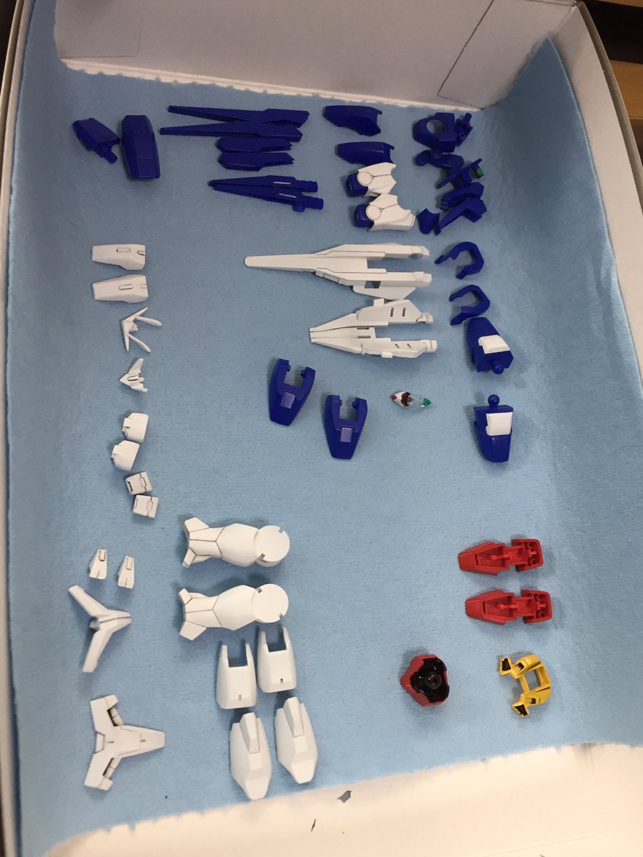 ガンダムフレーム、塗装完了。 今回はツインアイに蛍光色を使用したのでブルーライトで光ります(*´∀`*) このキット、塗り分けしようとしたら果てしなく出来るから辞め時が難しい。 #ガンプラ #ガンプラの画像貼るとRTされると聞いて