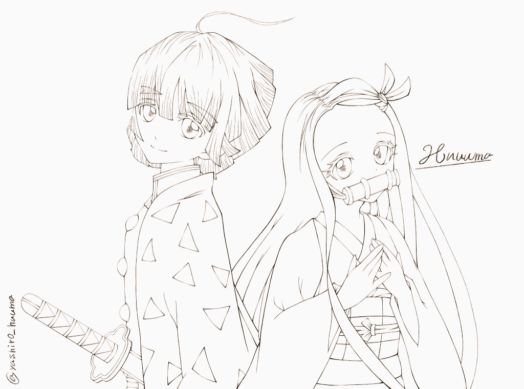 線画と背景完成(、´▿`)、✨ ゼンネズのちょこのっこフィギア可愛すぎてもう🥰✨癒✨ #鬼滅の刃 #鬼滅の刃お絵かき #鬼滅の刃夢女子さんと繋がりたい #イラスト好きな人と繋がりたい #イラスト好きさんと繋がりたい