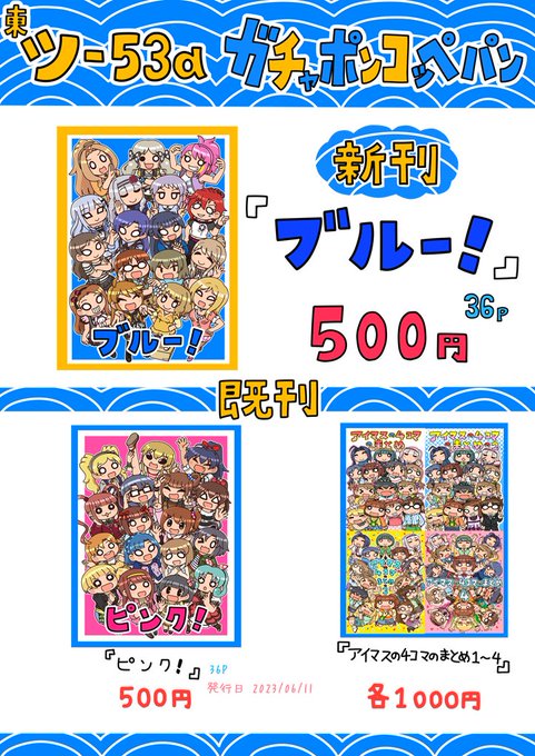 夏コミ(C102)のお品書きです。 スペースは二日目(日)「東ツ-53aガチャポンコッペパン」です。 当日はよろしくお願いします~ 新刊サンプル(yashiroku.tuzikaze.com/sample-imas38.…)