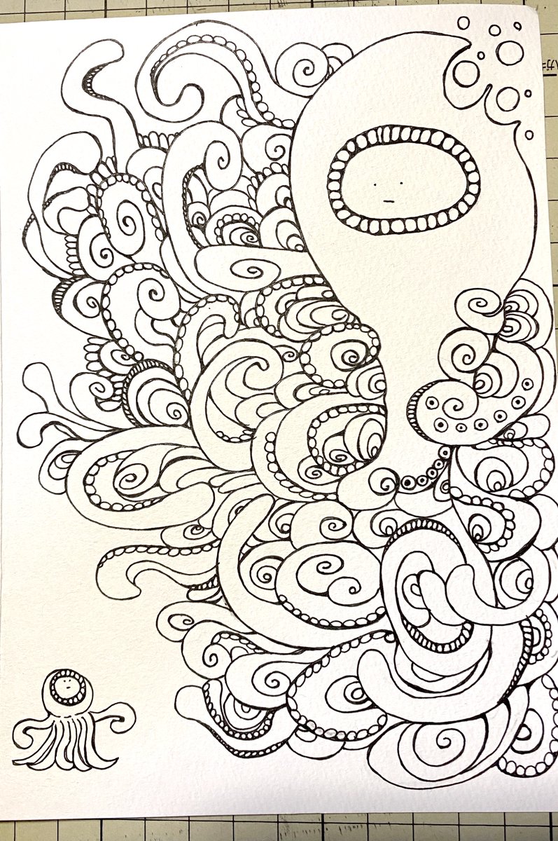 1 4 タコの足を塗る作業が今始まる!!!!! #ペン画 #イラスト #illustration #pendrawing 23/08/13 06:53