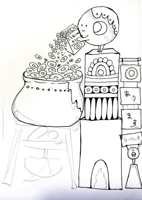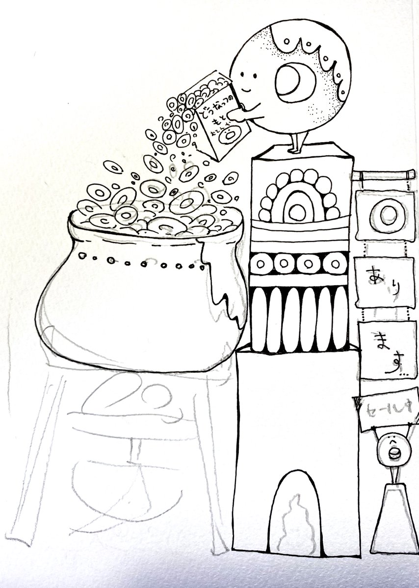 ドーナツによるドーナツ屋 #ペン画 #イラスト #illustration #pendrawing