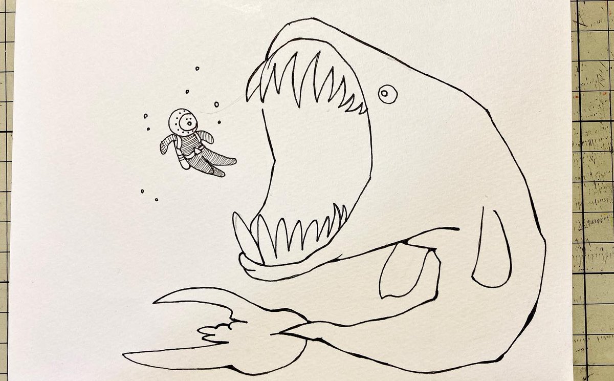 深海旅行 #ペン画 #イラスト #illustration #pendrawing