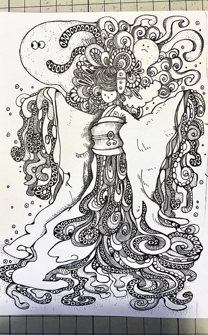 タコの足を塗る作業が今始まる!!!!! #ペン画 #イラスト #illustration #pendrawing