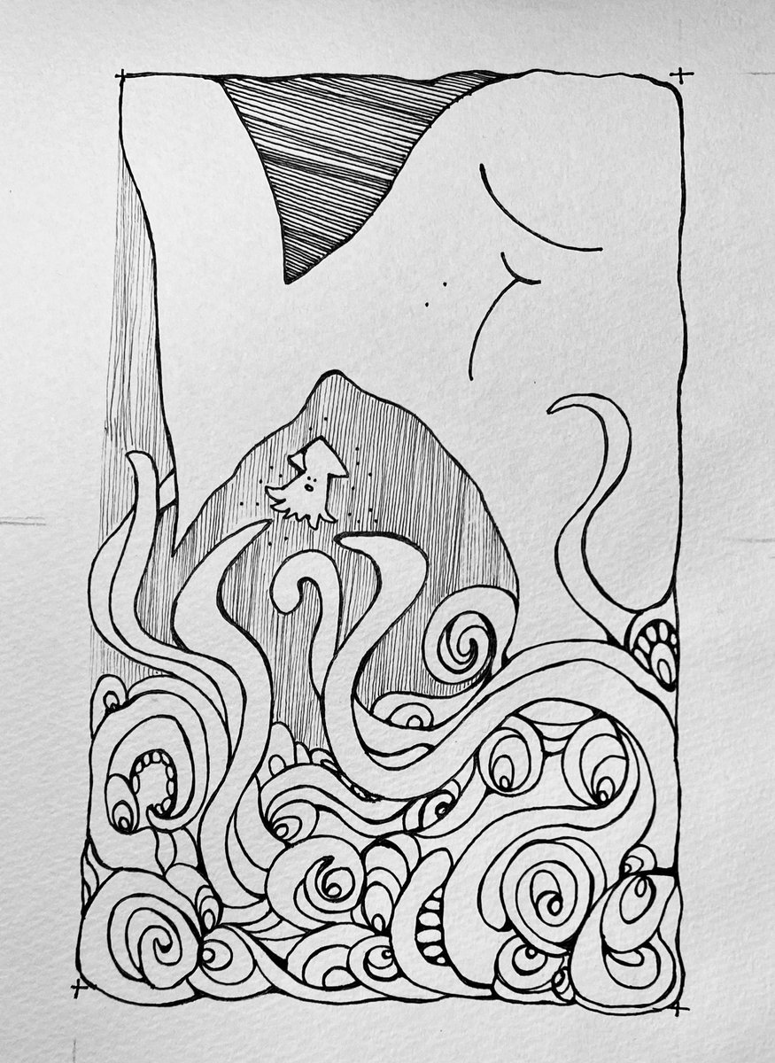 むぎゅむぎゅのイカ #ペン画 #イラスト #illustration #pendrawing