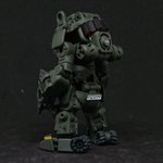 #マシーネンクリーガー 試作機体の評価は高く、無事に追加機体の発注を受けた。細かな仕様指示の通り擬装した純国産のヒトガタ… 舗装路の効率的移動のためナンバープレートと新開発のホイールを装備。