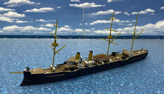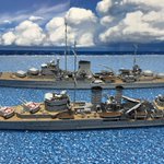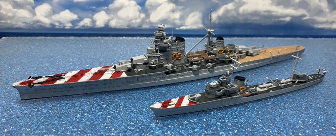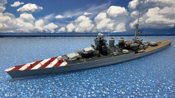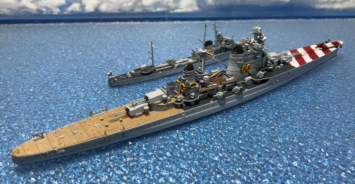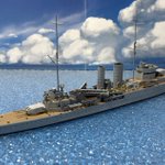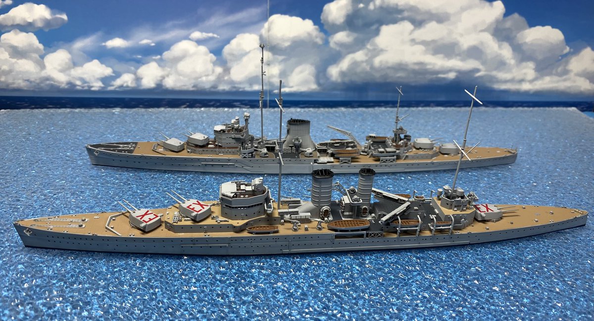 日付変わる前に撮れたので、改めて。 英重巡エクセター(トランペッター) 英軽巡エイジャックス(フライホーク) 主砲は可動なので、ポケット戦艦相手に長射程で戦えます。残りのダビットとかは今週中につけたいですなあ… #今月作ったプラモ晒そうぜ