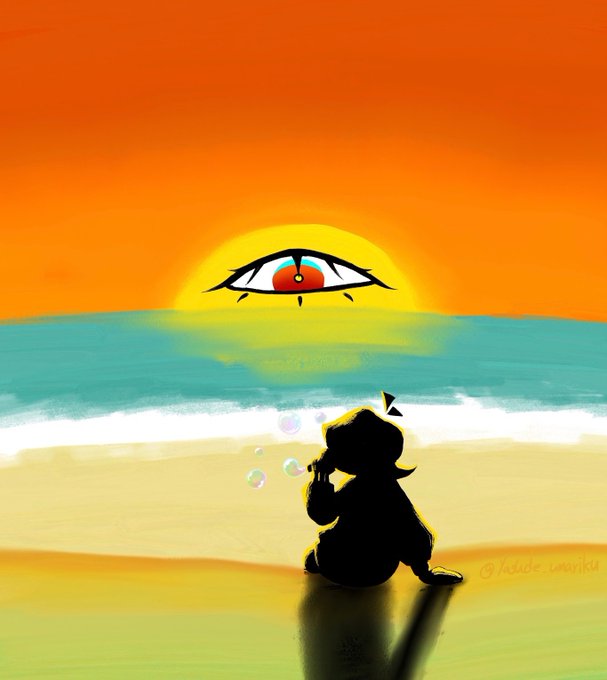 「心壊のビーチ」 ちょっと早いけど海で海水浴な絵を描いてみた enaノミズギスガタミテミタイナ~ #ENA #Enafanart