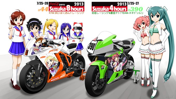 7年前のイラスト。 「K〇M?それよりスズキでしょ?」って言いながらも、 サイドに自身のイラストが描かれているのが照れ臭い。 な感じの表情にして描きました。 #鈴乃木凜生誕祭2020 #鈴鹿8耐 #8tai