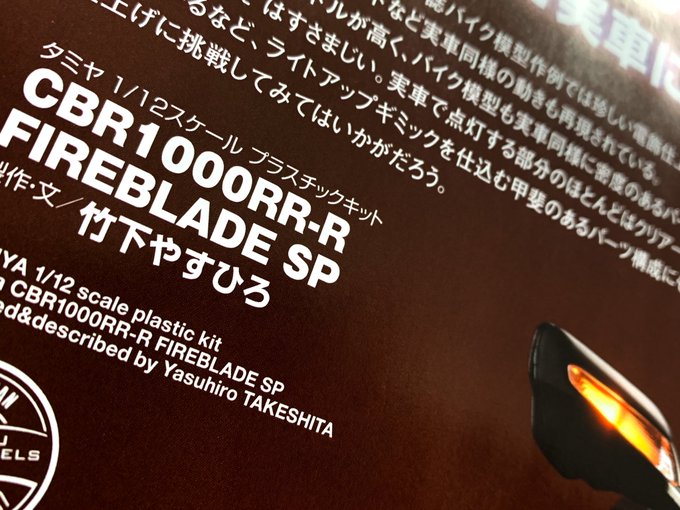 明日9/25発売の月刊ホビージャパンにて久々にがっつり電飾プラモの作例したのでよかったら見てみて。 タミヤさんのCBR1000RR-Rはほんと良いキットでしたん。