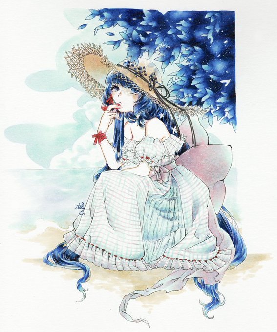 【外邦の夏袷】 憂ちゃんと久しぶりに #同じ色のコピックで描いてみた 行わせていただきました〜! テーマは【夏×ワンピース】👗︎🏖 コピックはR05、RV91、B60、B18、G0000、E41を使用しました。 とても楽しく描けました、ありがとうございます〜! #コピック