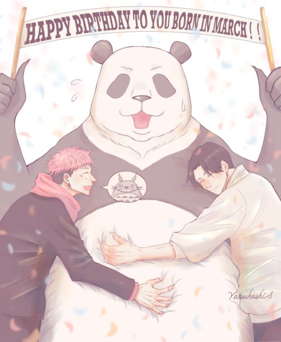 その246 今日はパンダの誕生日 3月生まれのメンバーもまとめてお祝いしました おめでとう🎈 #パンダ先輩生誕祭2023 #呪術廻戦ファンアート #イラスト