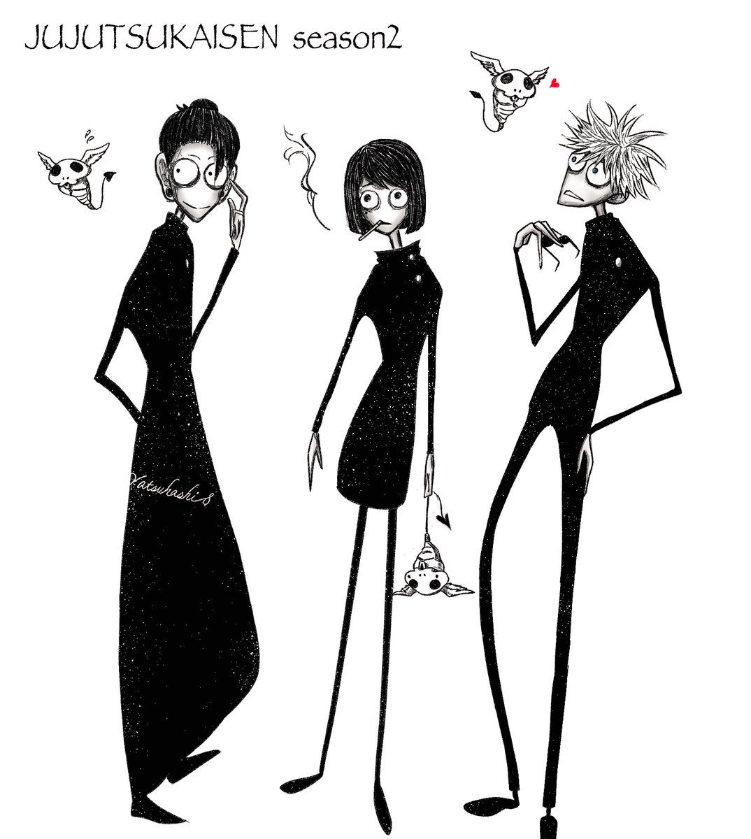 その266 おはようです リクエストのさしすです ジャック風というかティムバートン風になりました #イラスト #呪術廻戦ファンアート