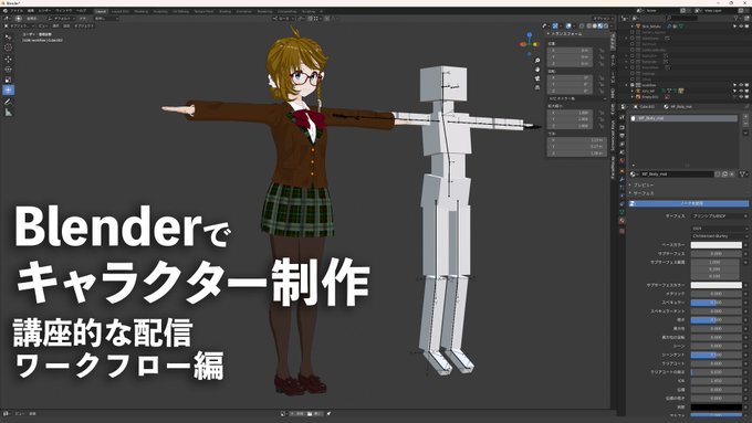 本日は15:00から講座的な配信(一般公開)の予定です。 内容は「キャラクターモデリングのワークフロー」です。これから、キャラモデリングを始めたい人や初心者向けの解説となります。 Blenderでキャラクター制作 講座的な配信 キャラモデリングのワークフロー編 youtube.com/live/wBcNEy1Qp… #blender