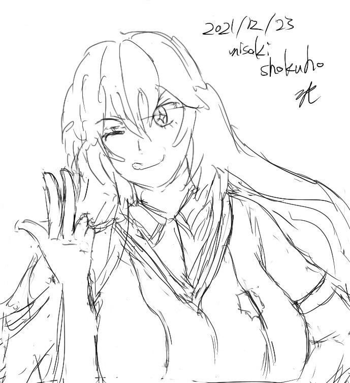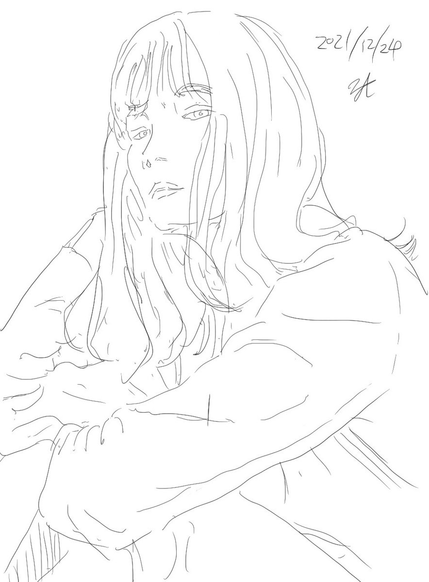 練習 #クロッキー 5分 新年になった瞬間に自然と起こるやる気の勢いに乗り続けたい。 ブラシが細いからキャンバスサイズ大きくしてみたら薄すぎて見えにくくなってしまった。大きくしすぎたかな。 #絵描きさんと繋がりたい