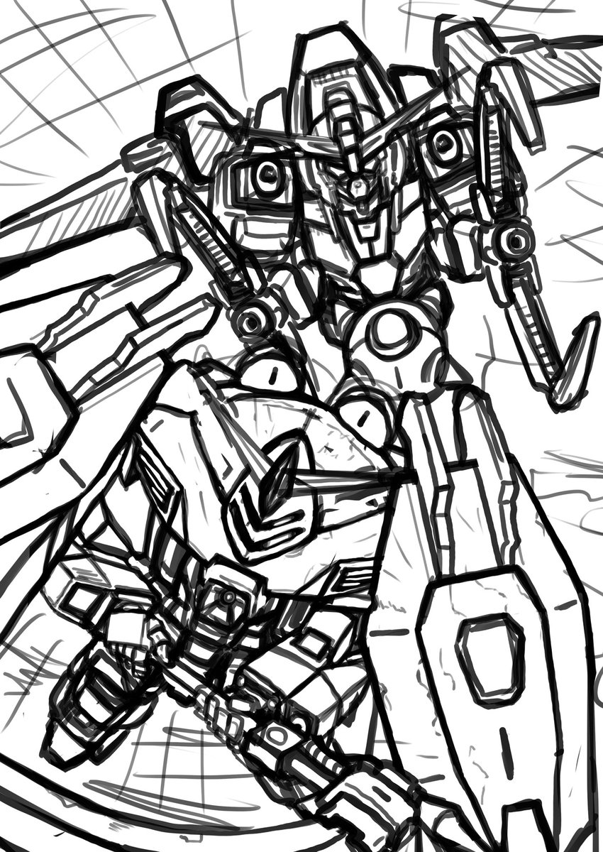 Skeb進捗です ラフ完成、これから線画に入ります〜 こう見えてシナンジュベースの機体です