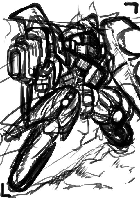 3 8 Skeb進捗です ラフ完成、これから線画に入ります〜 こう見えてシナンジュベースの機体です 23/05/10 21:10