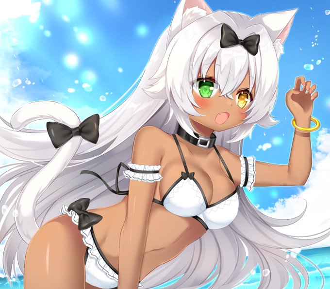 Skeb納品しました!褐色肌には白色の水着が似合いそうだと思ったので白にしてみました~✨描かせていただきありがとうございました!! skeb.jp/@yawa0w0/works… #Commission