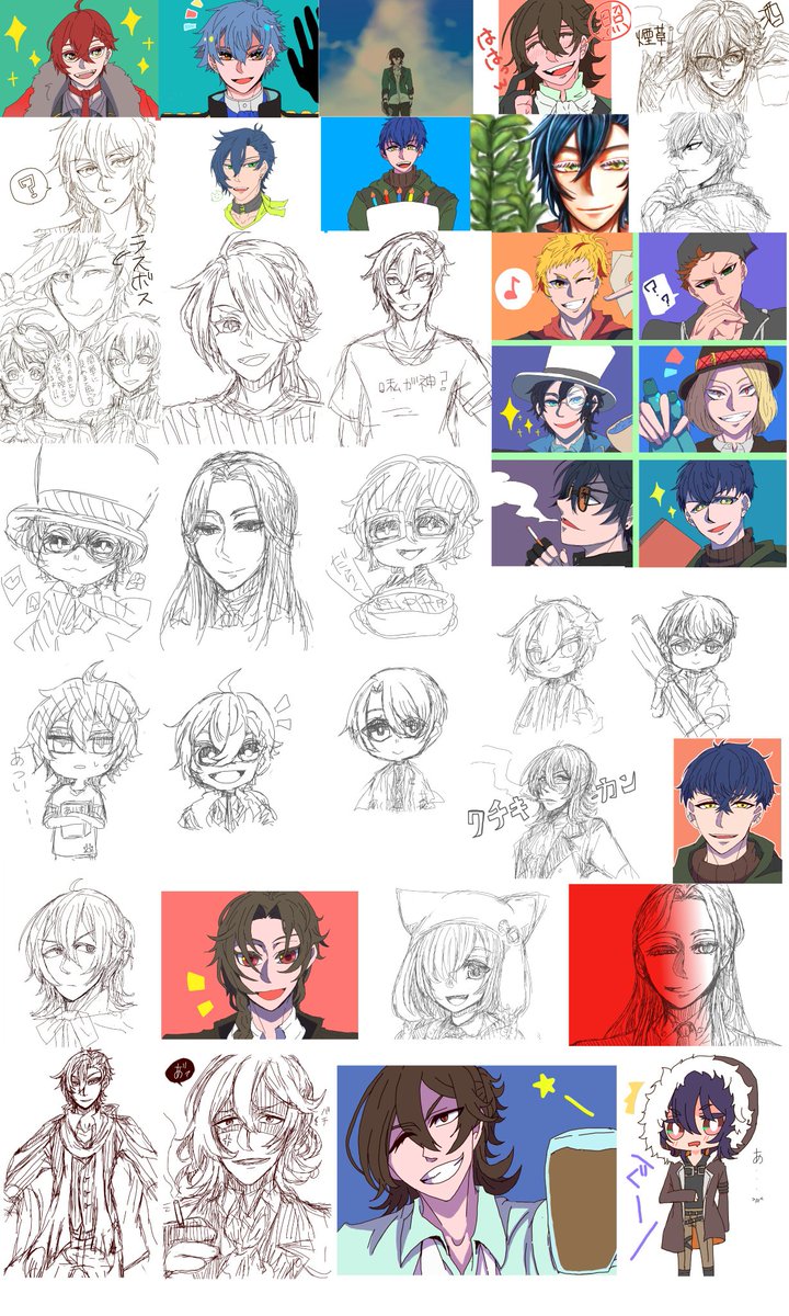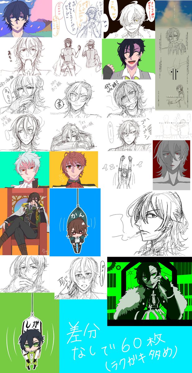 1 7 #今月描いた絵を晒そう 差分とか入れないで落書きいれて大体60枚🤔 22/08/31 00:32