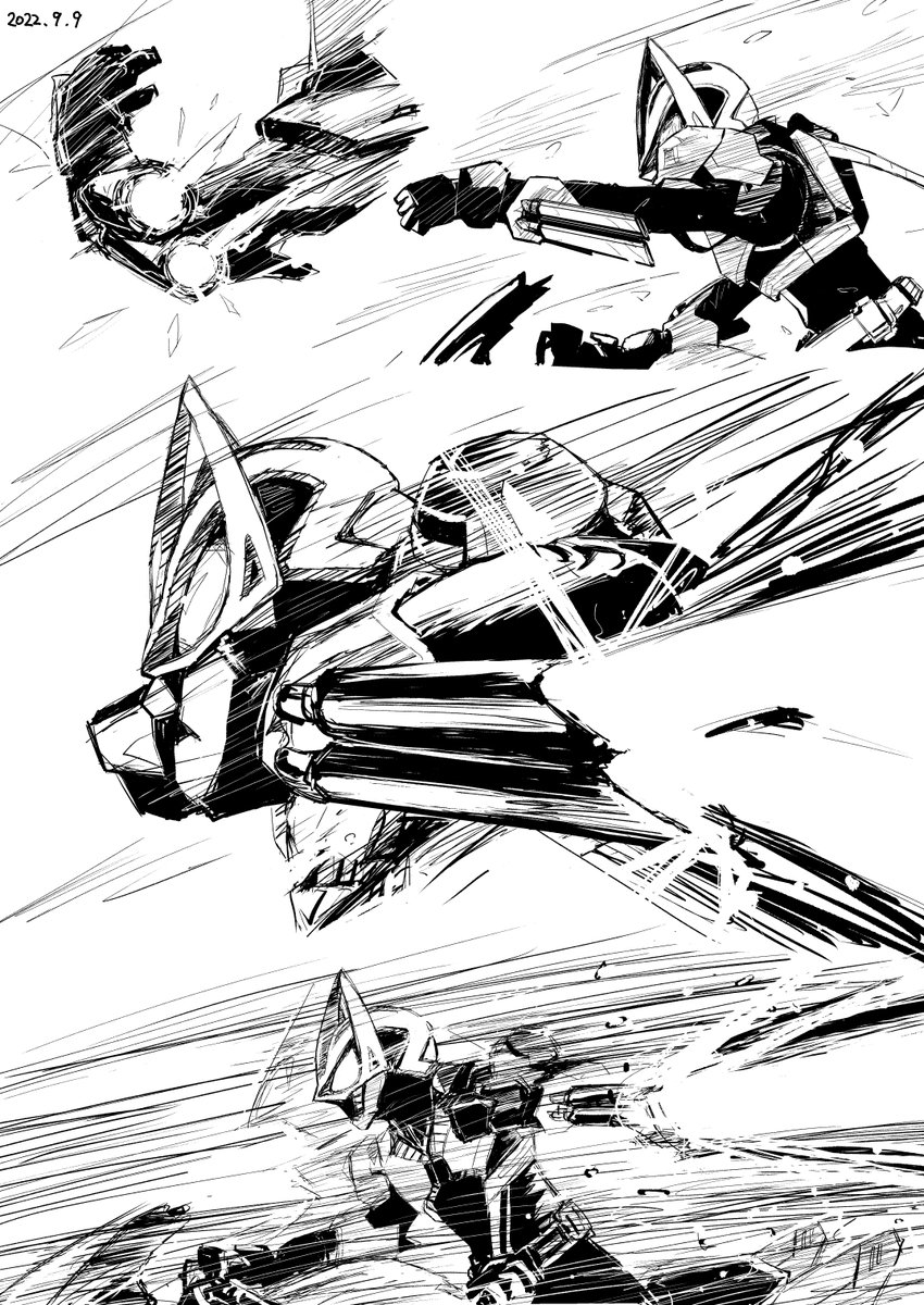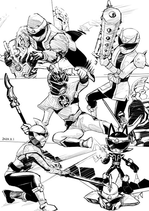 24 99 #今月描いた絵を晒そう ドンブラザーズ(特撮)2枚、レイフォース(ゲーム)、あと飛行機の練習 23/03/31 20:00