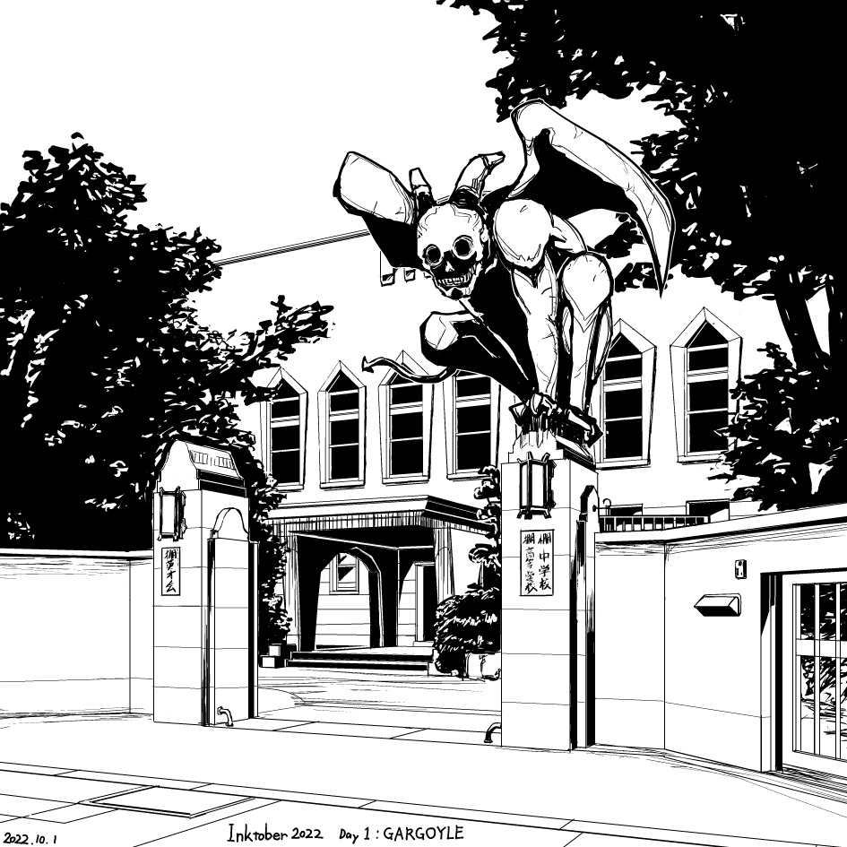 13 109 DAY1:GARGOYLE #inktober2022 #inktober 22/10/01 10:16