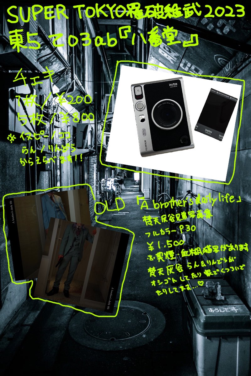 【お品書き】 2023.05.04 SUPER COMIC CITY SUPER TOKYO罹破維武2023 [東5て03ab] D&Dイヌピー、梵天ココの写真集新刊2冊作りました…! 当日はD&Dイヌピーで参加します🐶🏍️ お気軽にお立ち寄りください🫶 よろしくお願いします!!