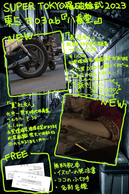 7 22 【告知】 TOKYO罹破維武 14 東京ビッグサイト5/4[東5て03ab] 間に合えば新刊2冊頒布予定です🫶 よろしくお願いします🏍🐶🐱💴 ⬇️ツリーにサンプル 23/04/24 23:23