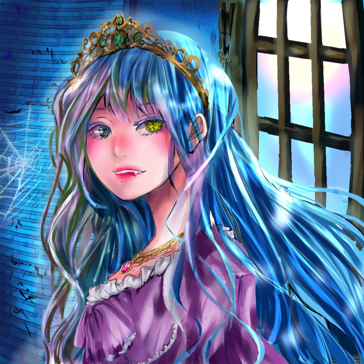 綺麗な髪のお姫様が描きたかったはずなのに、気づけばおどろおどろしくなってました。 髪をじっくり描けたので満足です。 #イラスト #女の子イラスト #お姫様