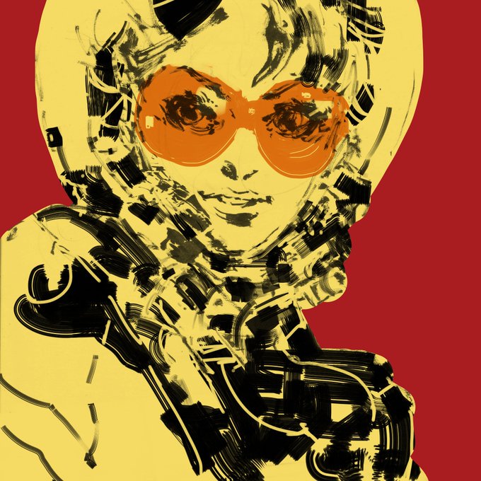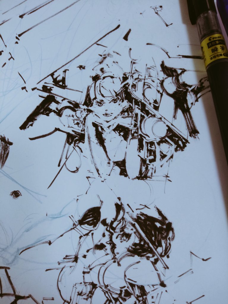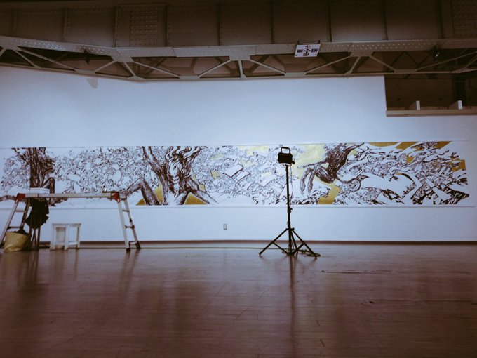 これ、伸びなかったんだよな…。屋外イベントのお客さん捕まえて適当に線を書いてもらって(3枚目)、其処からイメージして即興で描いた筆ペン&チョークの一発描きライブドローイング。 #PRINTRUSHMORE #triggeringmessydoodle