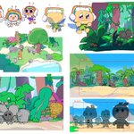 그외 등장하는 다양한 공간. 놀이터/쇼핑몰/무지개섬. 복잡한 몇몇컷의 경우 배경 레이아웃및 스케치 작업을 함께 진행했다