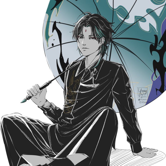 #Inktober2022 - Day 16 Ayato. Well, it's not really an ink-tober since it is already colored. I wanna make somethin with today's inktober art, so I colored it #inktoberday16 #inktober #kamisatoayato #ayato #genshinimpact