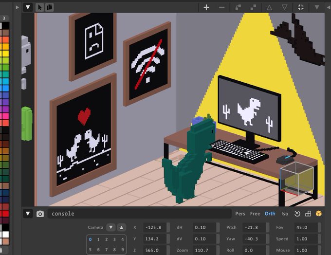 Please don't connect to the Wi-Fi T-Rex is looking for his love ^^ My 2nd submission for the one-room 2022 event. I would like to thank @Dimasvoxel for organizing this event🤍🌼 #voxelart #magicavoxel