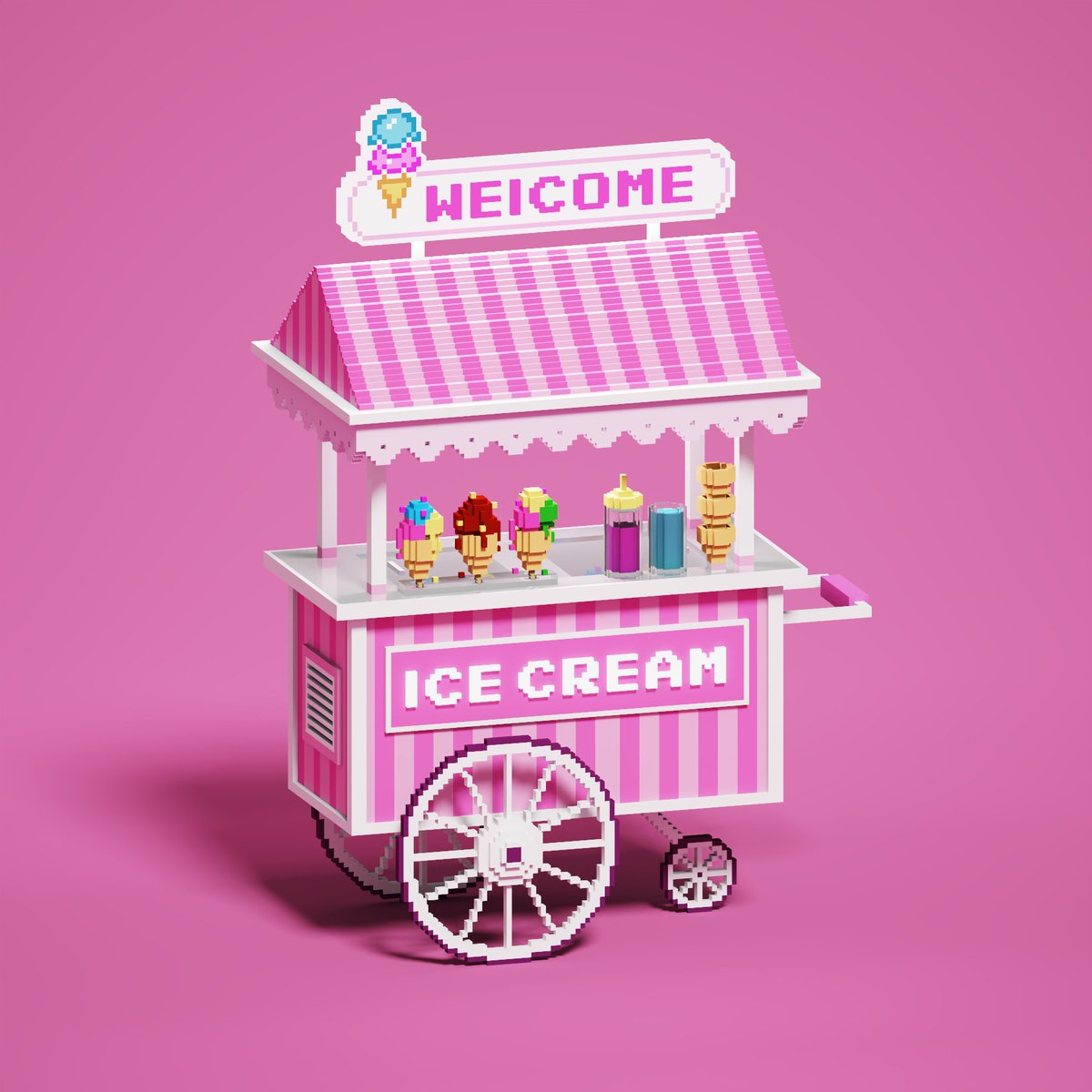 Ice cream cart voxel. #voxel #voxelart #magicavoxel #3dart #voxels #voxel_art #voxelartist #characterdesign #3Dartist #voxelgame #voxel_game #voxel_artist