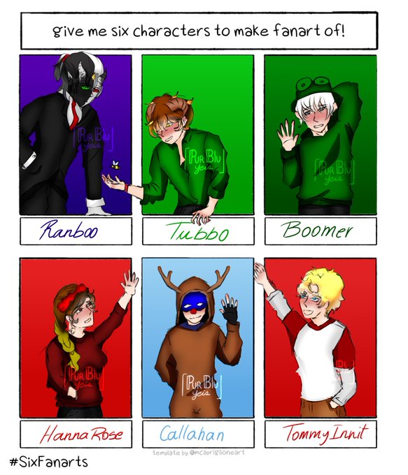 Thank you very much for the 100 followers, here are the characters that some followers told me, thank you for your contribution! #ranboofanart #tubbofanart #boomerfanart #hannahxxrosefanart #callahanfanart #tommyinnitfanart @artists_mcyt