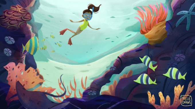 Hey #PortfolioDay! 🌊 I'm Arielle, a Filipino character designer + illustrator! I love designing characters, painting underwater scenes and playing around with color. Available for work! 💌 arielledraws@gmail.com 🐙 yelliedraws.com