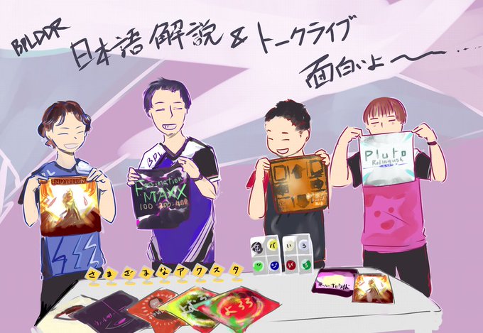 ボス曲のジャケットを手に取って楽しそうにしてるプレイヤーのみなさんの姿が見られるので配信チケット買うか悩んでる人いたら買って観てほしい 日本語解説以外も楽しいよ #BPL絵 twitter.com/yellowM7/statu…