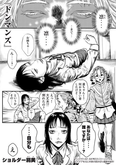 AIの生成した文章を元に漫画を描かせていただきました! 人類の者としてAIの下につくことを決めました!お先! 【読切】『ドンマンズ 』ショルダー肩美 | ヤンマガweb yanmaga.jp/comics/%E3%83%… #ヤンマガ作家 AIチャレンジ! #ヤンマガ感想