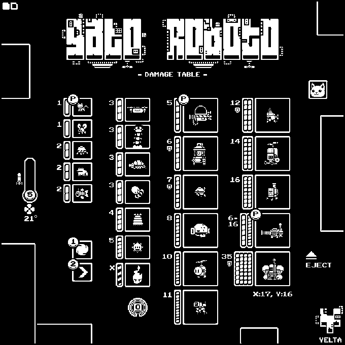 Gato Roboto - Damage Table I haven't found a table with how much HP each enemy has, so I had to play a lot of GR and find out myself. #1bit#pixelart#ドット絵 @doinksoft