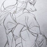 24 121 今日は一日中着物の尻尾穴どうすんねん問題を考えつつラフを描いていた。そして良き横顔が描けた。 23/07/02 23:56
