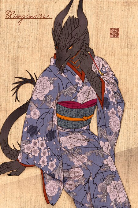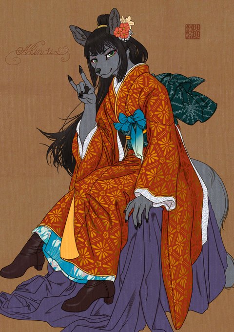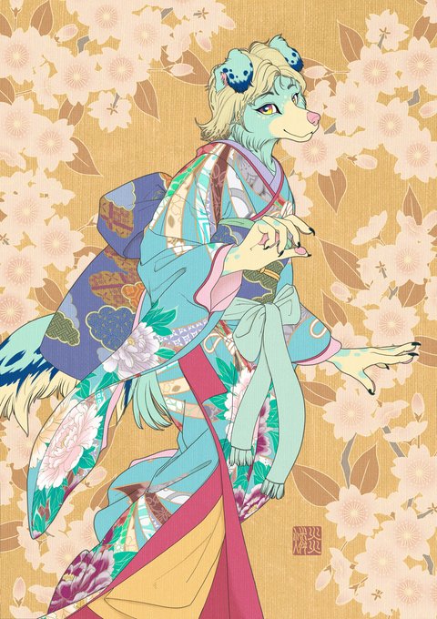 タグ企画 #一次創作絵師拡散フェス03 に参加します 和服を着たケモノを描いてます