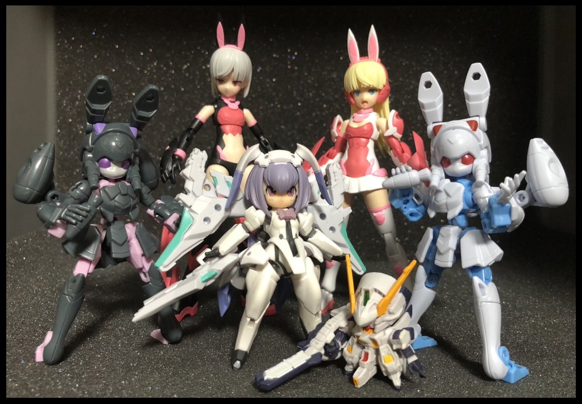 身近に在ったウサギな方々!!٩(๑❛ᴗ❛๑)۶ #デスクトップアーミー フレアナビット #SDガンダム NEO TR-6ウーンドウォート #アニマギア DE フラッペ&コラーテ #30MS リリネル&ララネル