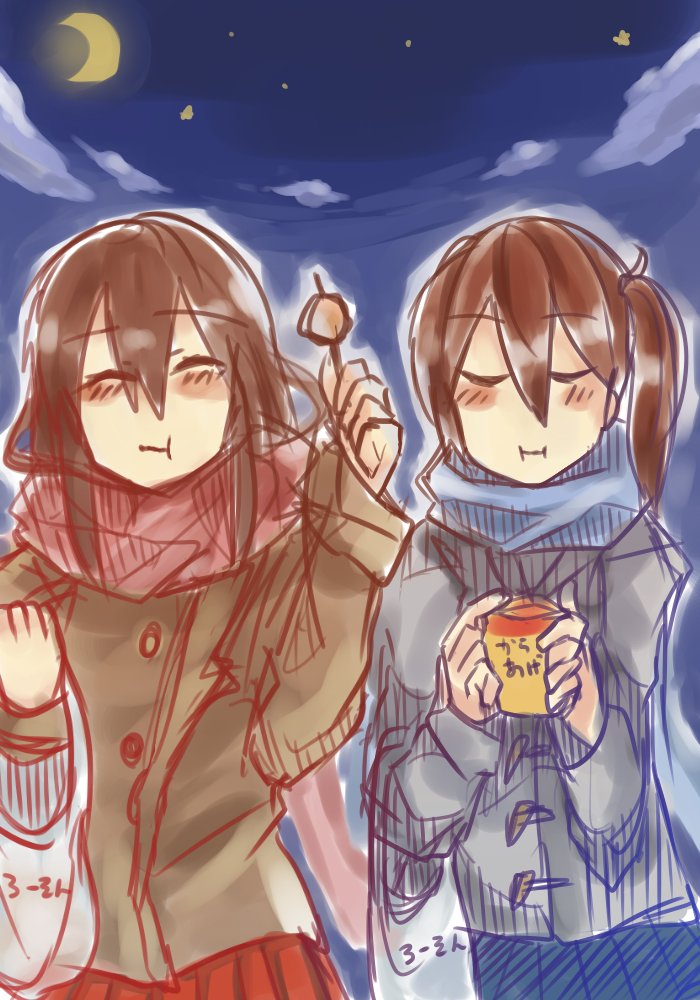 #艦これ版深夜の真剣お絵描き60分一本勝負 #艦これ版真剣お絵描き60分一本勝負_20160201 赤城さんと前回描けなかった加賀さん コンビニのやつうまい
