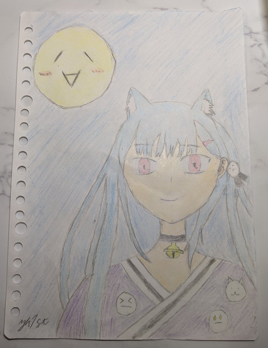 満月と浴衣姿(だと思ってくださいw) #ユ絵