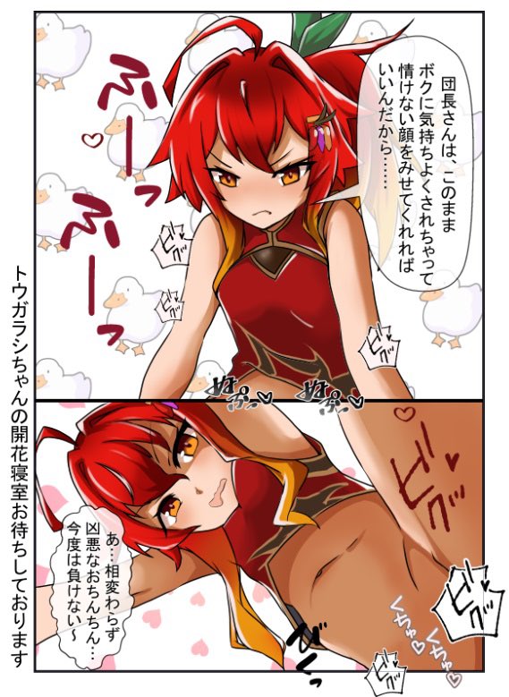 #フラワーナイトガールイラスト やったーーっ!トウガラシ🌶️ちゃん開花ぁ〜!嬉しいっ☺️ 以前描いた(ちょい)エロ系同人誌とはちょっと違ったけど、団長好き好き分からせガールになってて安心しましたw カプサイシンに幸あれっ!