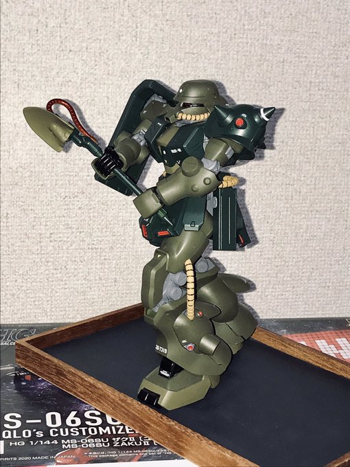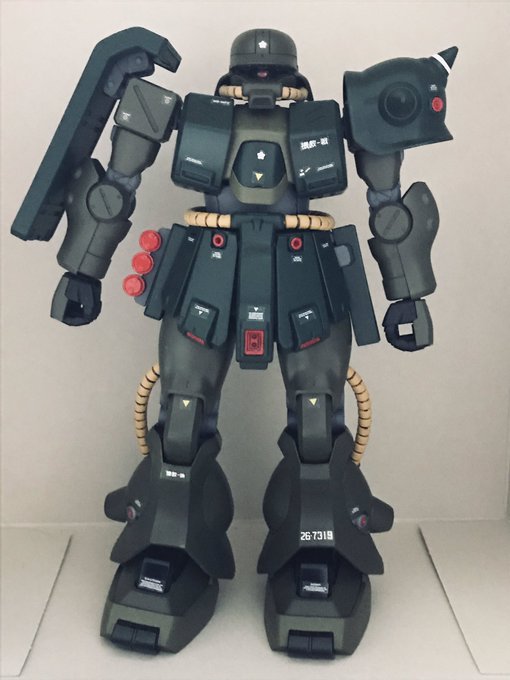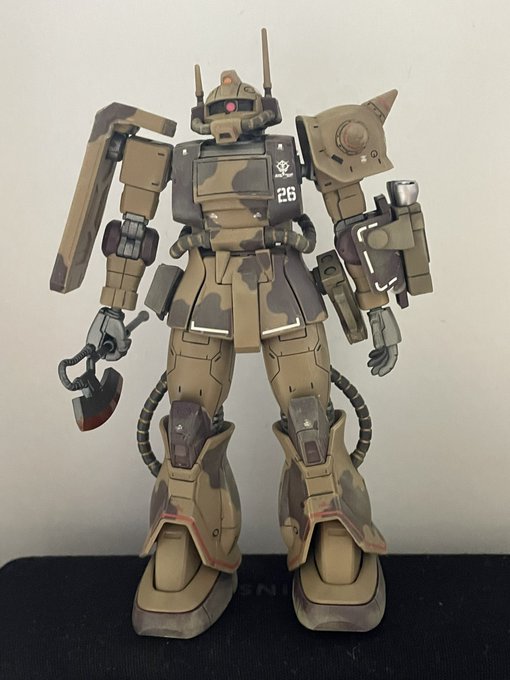 #ガンプラ #ガンプラ好きな人と繋がりたい #ガンプラの画像貼るとRTされると聞いて #ガンダムククルスドアンの島 久しぶりのツイート デザートタイプザク完成しました。 珍しく、水転写デカールだったので、マークセッターやマークソフターのおせわになりました。