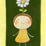 引き続き、頭に何か生えてるパターン。タイトル「花ひらく」 だいぶ縦長。たまに変なサイズ(比率)で描いちゃうことがある…… #イラスト #ガッシュ #不透明水彩 #まるがお